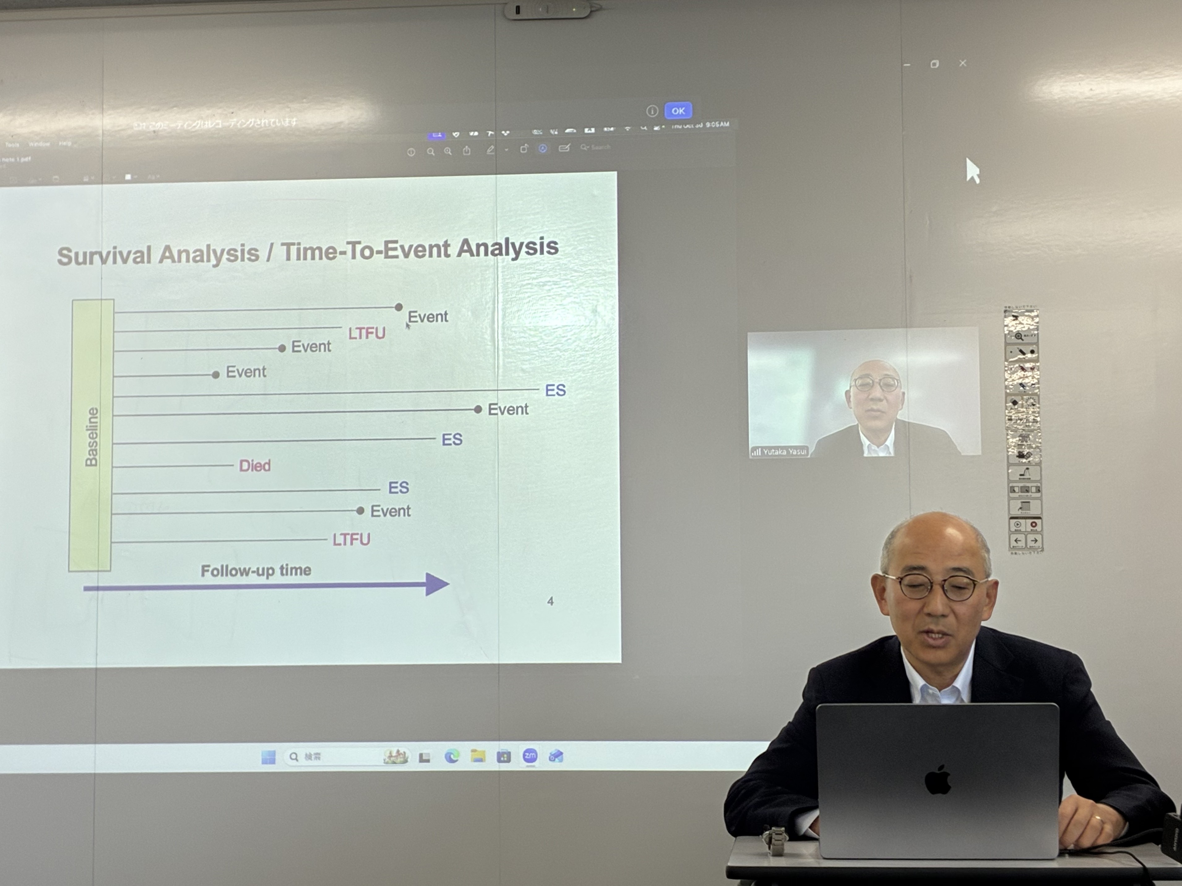 2025年10月30日、米国・セントジュード子供研究病院(St. Jude Children’s Research Hospital,Memphis,TN,USA)のProf. Yutaka Yasuiが本学を訪問しました。Prof. Yasuiは大学院データサイエンス研究科の講義「統計的モデリング実践論」にてCox比例ハザードモデルについてゲストとして講義を行われ、小児がん生存者のデータを探索・分析・共有するためのデータポータルであるSt. Jude Survivorship Portalの使い方について解説されました。なお、データサイエンス・AIイノベーション研究推進センターは、データサイエンス学部の和泉志津恵教授の推薦により2024年4月からProf. Yasuiに客員教授を委嘱しています。