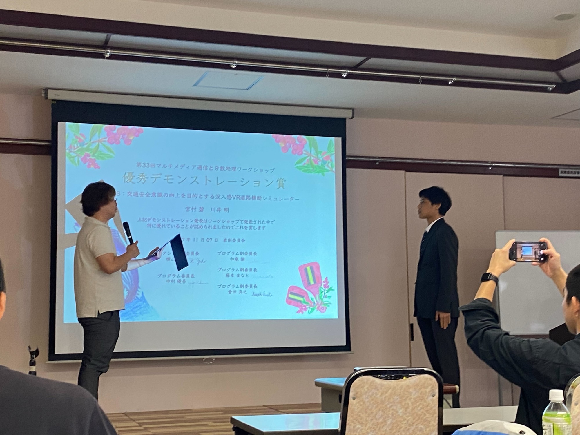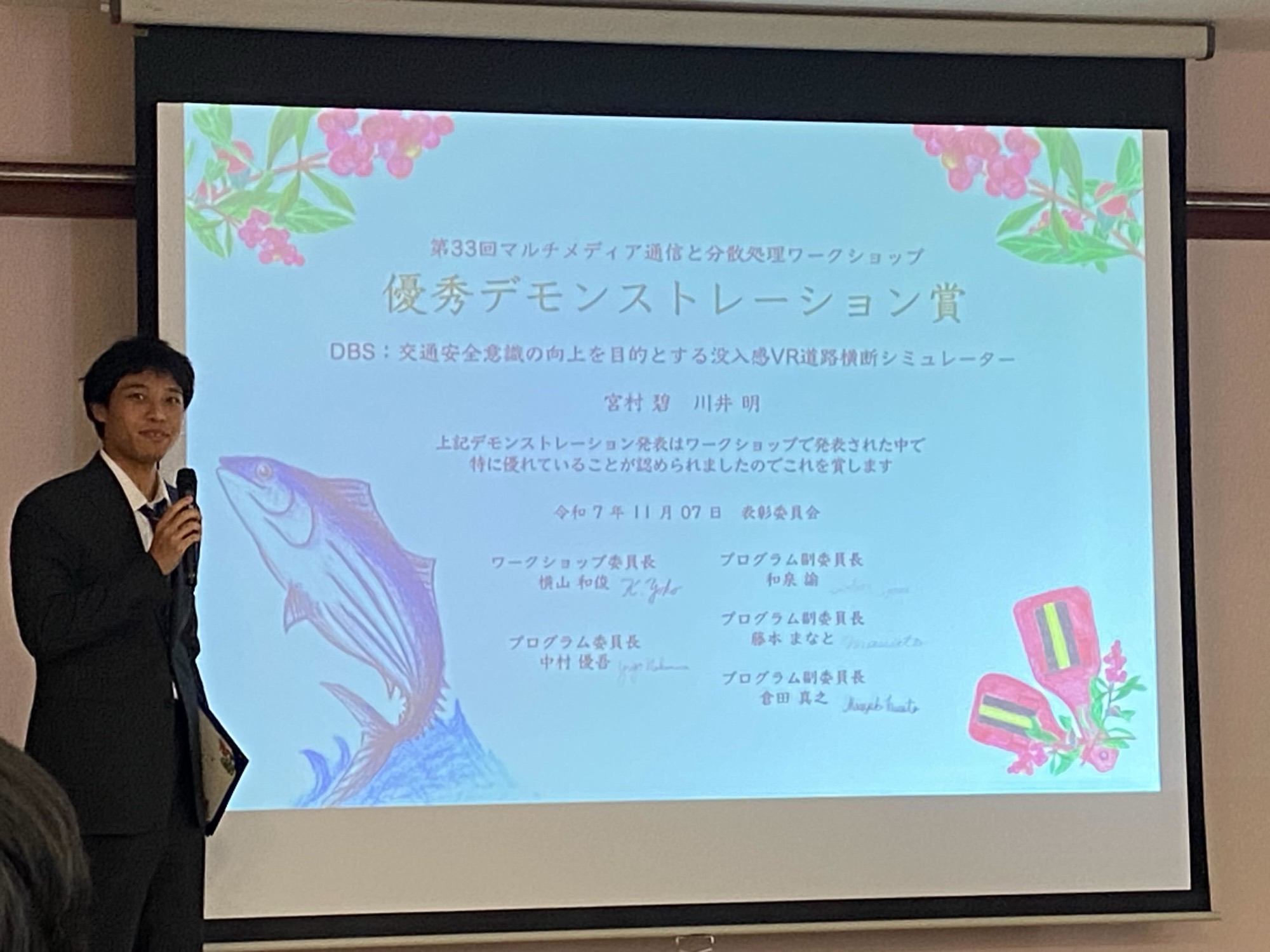 ・発表タイトル:DBS:交通安全意識の向上を目的とする没入感VR道路横断シミュレーター(宮村 碧、川井 明)