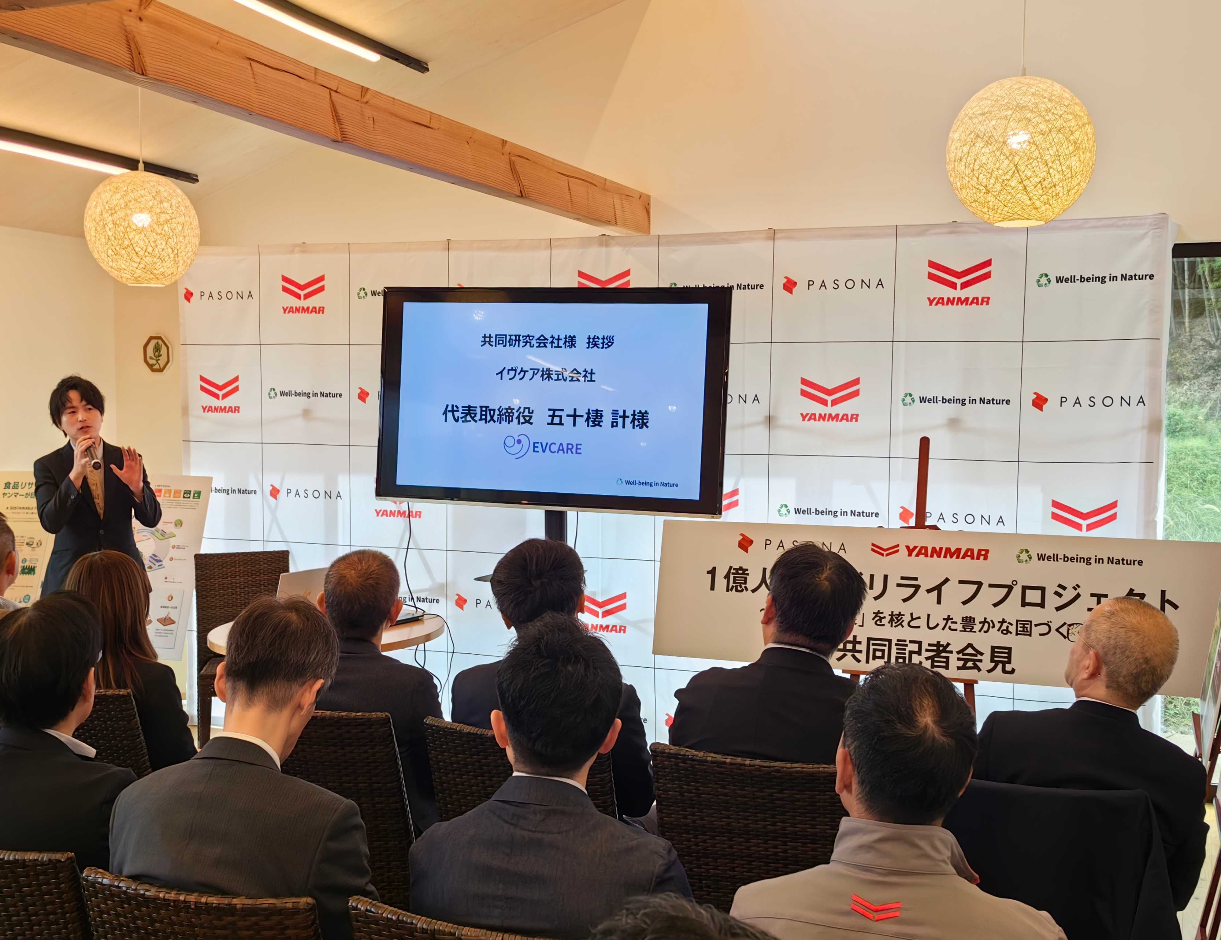 本イベントには、一般社団法人Well-being in Nature、株式会社パソナグループ、ヤンマーホールディングス株式会社、TOPPAN株式会社、自給自足カレッジ株式会社、イヴケア株式会社、滋賀大学などが共同研究機関として参加し、各代表者による挨拶と今回の共同研究に対して期待する事について各社様からのご意見を頂きました。