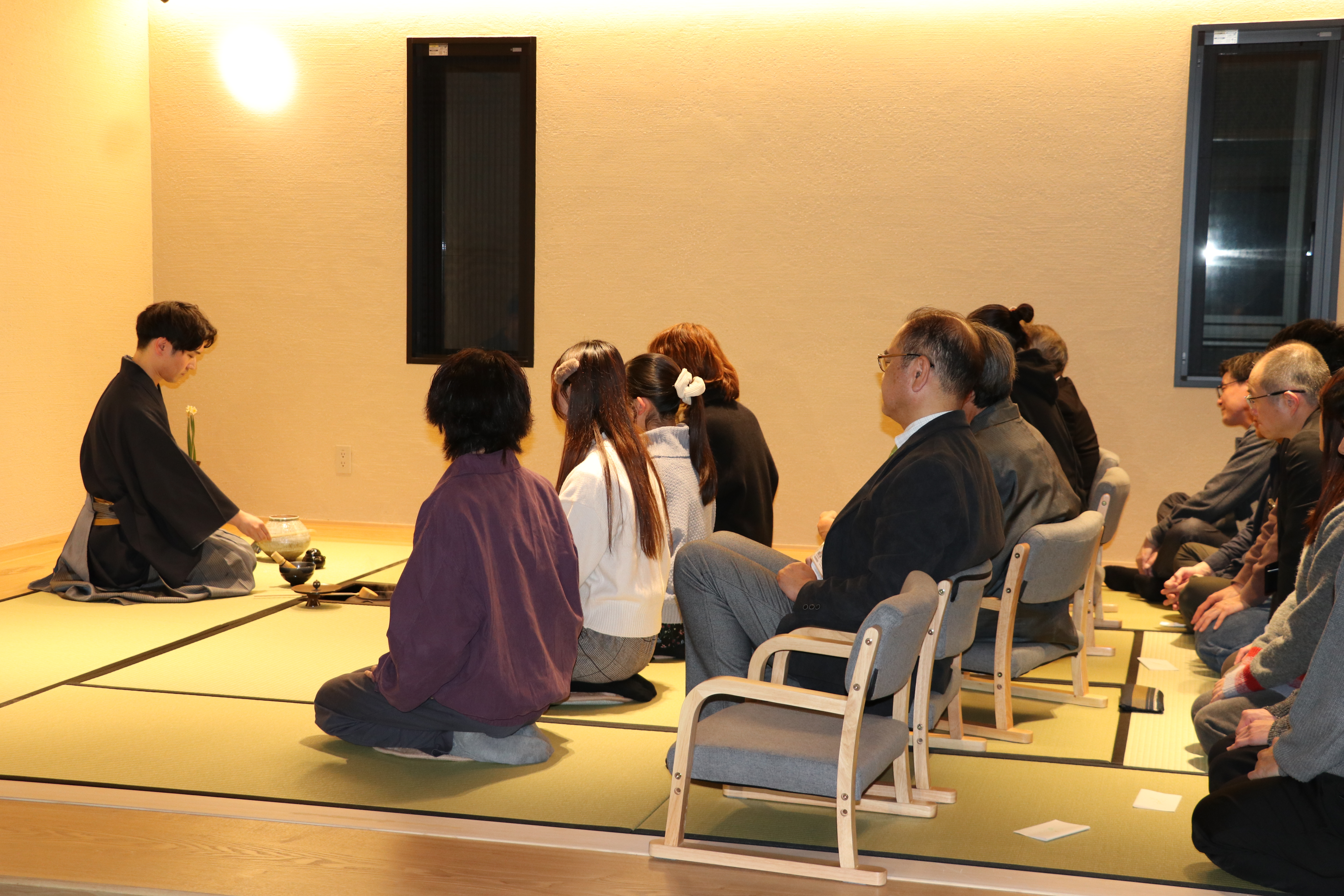 イニシアティブ棟「創竹庵」で初釜を開催 学生、教職員らで新春を祝う