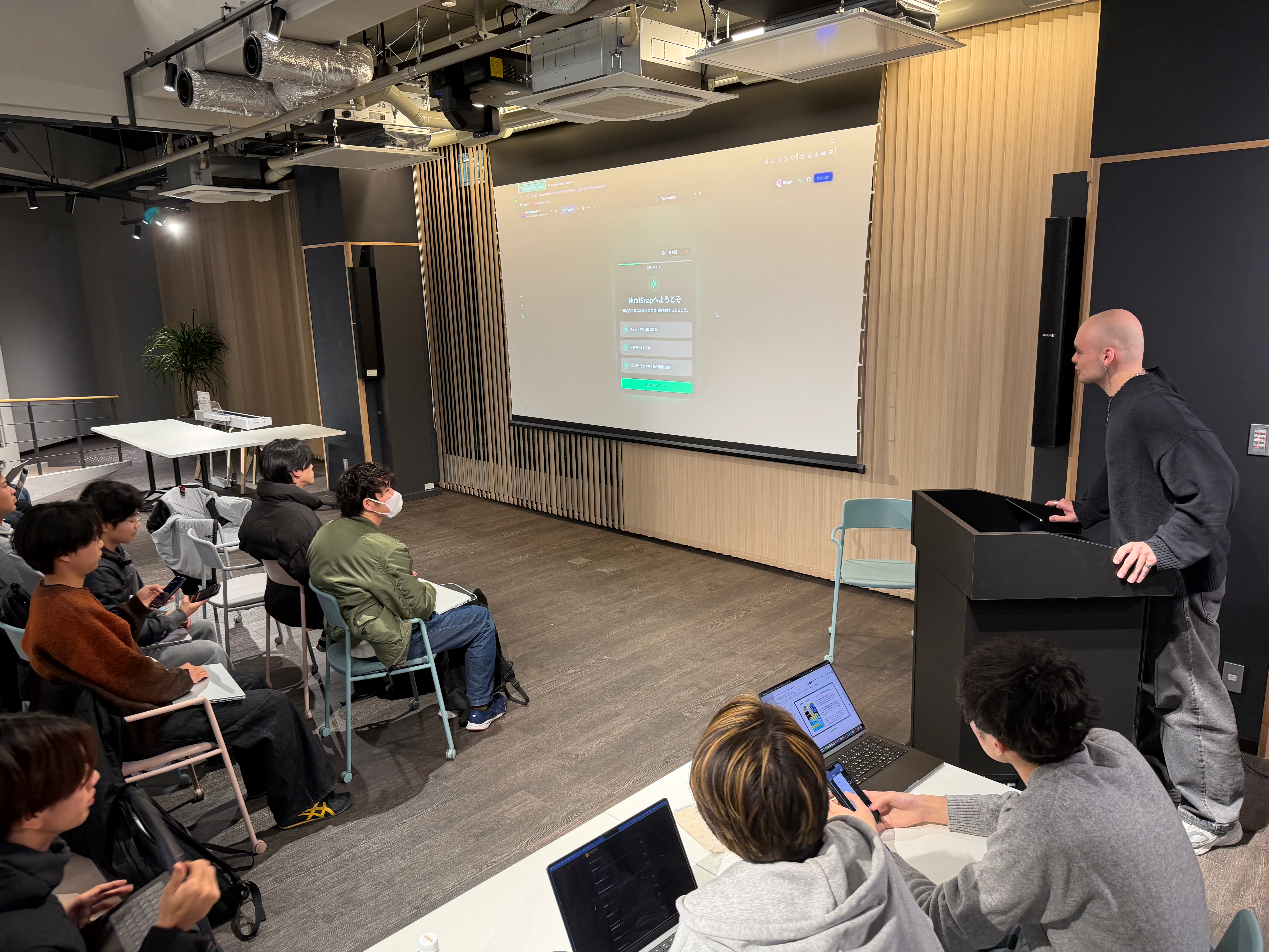 本イベントは、昨年11月から12月の間、参加者約20名に対し7回にわたり開発アプリの企画、ドキュメント作成からAIツールを使ったアプリ開発まで、データサイエンス・AIイノベーション研究推進センターのポール・リー特任講師が指導、データサイエンス学部生を中心に活動するDSコミュニティ推進会が伴走支援を行い、本年1月9日にコンテストが開催されたものです。本学経済学部生やデータサイエンス学部生のほか、近傍のミシガン州立大学連合 日本センターからも参加され、、分野を超えた幅広い関心を持たれたイベントとなりました。
